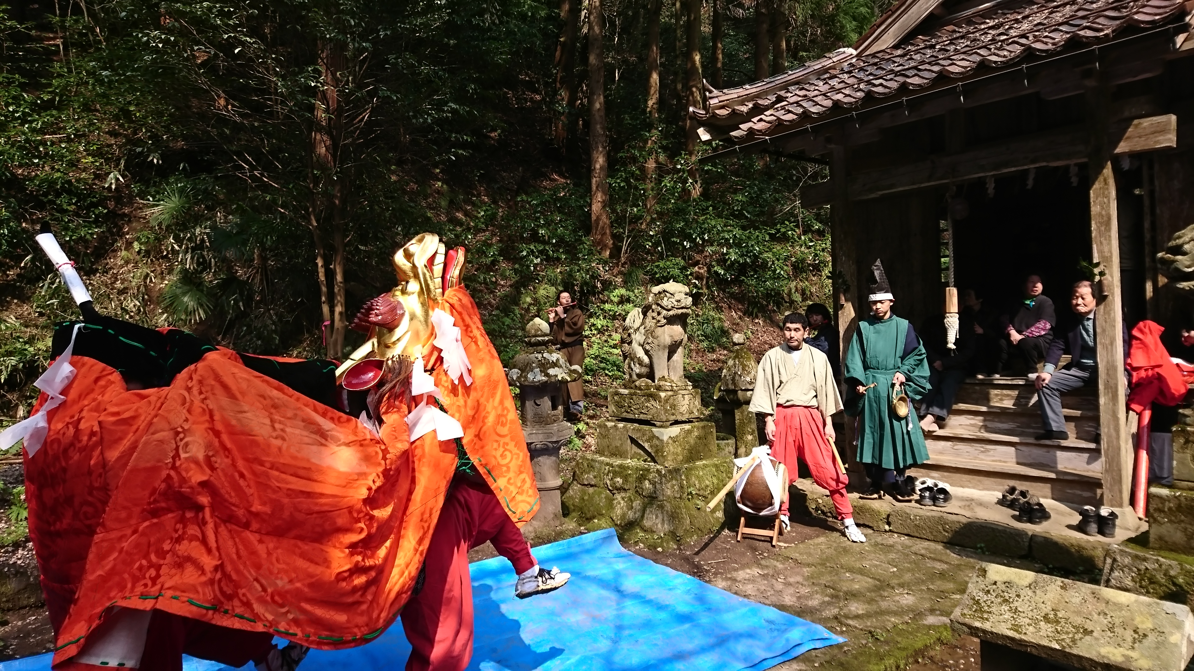 少子高齢化と氏子数の減少に伴い、舞い手が少なくなる中、必死に伝統文化を継承している。毎年3月最終日曜日の例祭日に御神前に奉納し、1戸約10分〜15分を舞い、お神酒をいただく。道中は同じところ(道)は通らない。